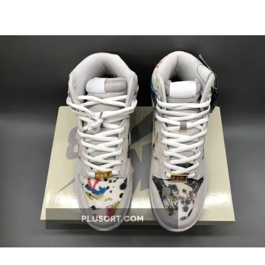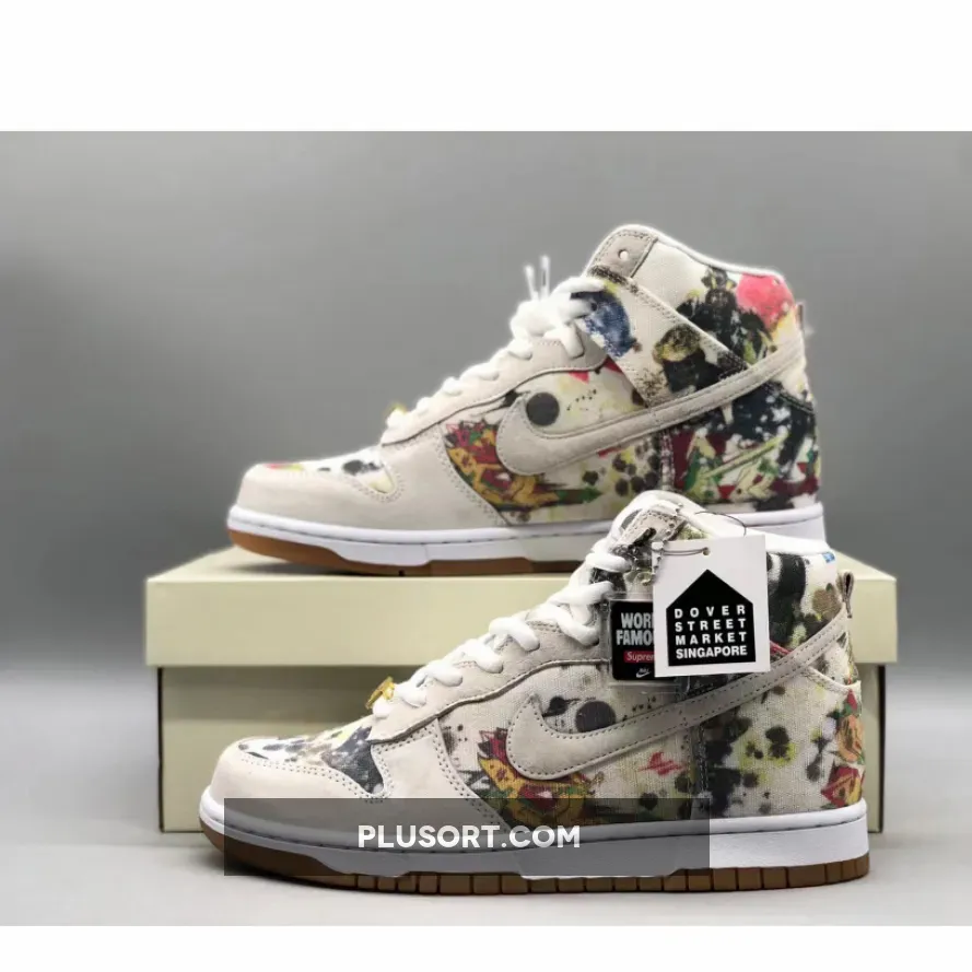 The Supreme x Nike SB Dunk High Rammellzee is a collaboration between the two powerhouses that showcases the work of New York visual artist, Rammellzee.