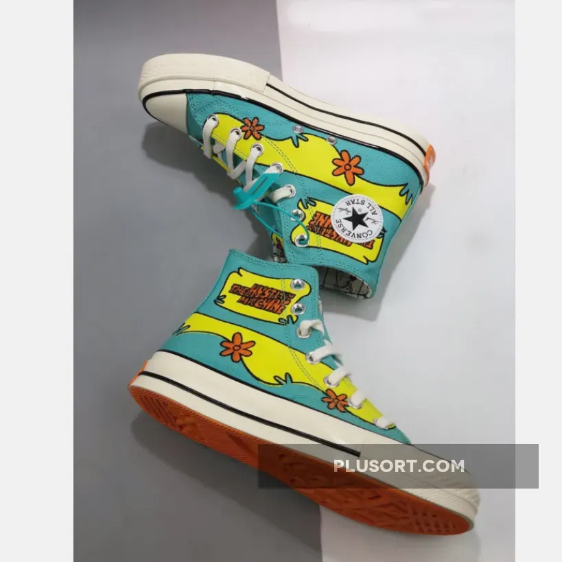 Loving the vibrant colors & mystery vibe of these Chucks! ? The canvas is durable & the cushioning is ?. Perfect for spooky season! ? #ScoobyDooXConverse #MysteryMachine ??