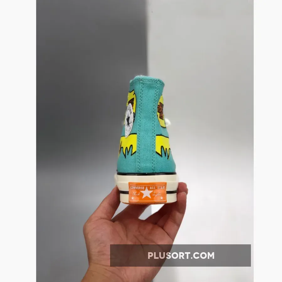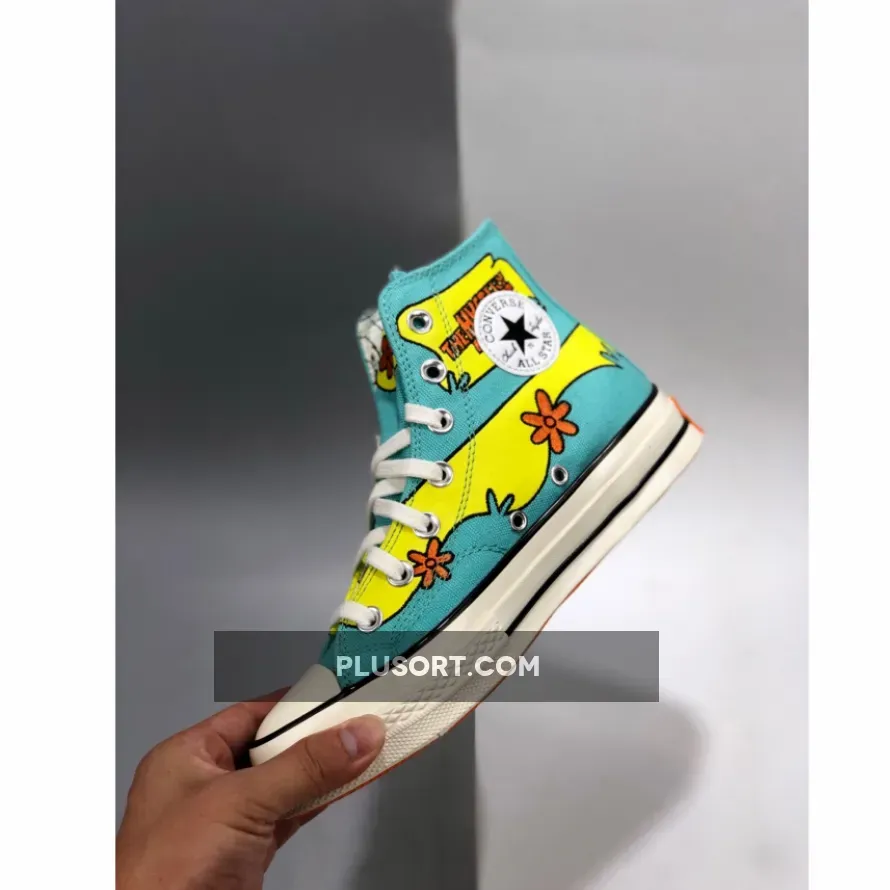 The Scooby-Doo x Converse Chuck 70 High Top Pool Blue is one of several variants of the classic Converse silhouette launching as part of an ongoing collaborative collection with Scooby-Doo. Modelled on the colourway of the legendary mystery machine from the show, these are no-doubt the stand-out pair from the collection. The uppers here are crafted from high-quality durable canvas, and then decked out in the mystery machine’s signature pattern – with blue, green and orange shades. Converse’s signature branding appears in the form of a sewn-on star logo, while mystery machine branding is featured as part of the vibrant print. Black and orange stripes continue the familiar colorway, while a round rubber toe box completes the look neatly. The Scooby-Doo x Converse Chuck 70 High Top Pool Blue is yet to receive an official release date, so be sure to stay locked in right here at Our Store Supplier for all the latest updates as they launch.