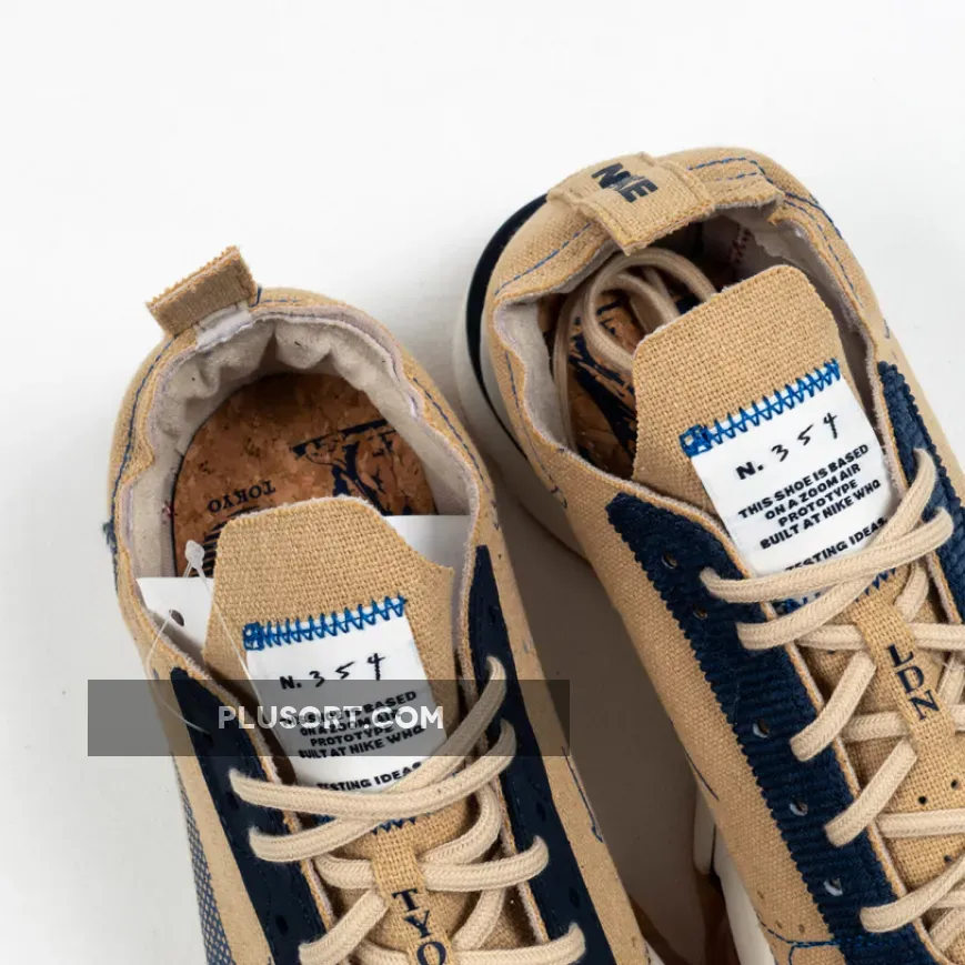 The minimalist ‘Hemp’ Air Zoom Type boasts an intentionally unfinished look, furthered by a full raw hemp upper. Bolts of rich blue are present on the printed Swooshes, corduroy eyestays, suede heel tab and toebox’s contrast stitching. In a nod to the diverse cities the shoe is inspired by, the left shoe features an English tag and a “LDN” spellout on the throat, while the right shoe’s tongue tag uses Japanese characters and adds a “TYO” spellout for city-centric authenticity.