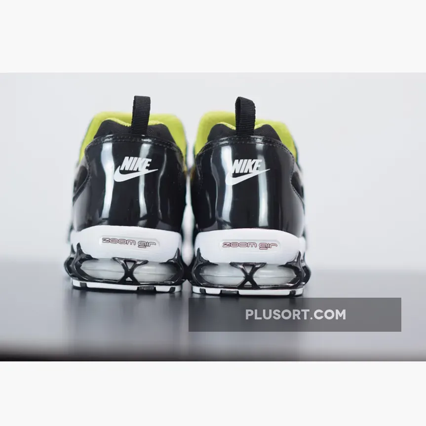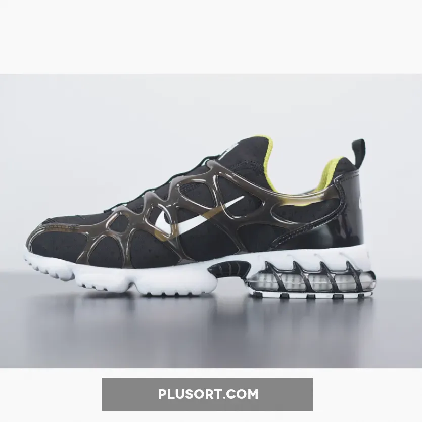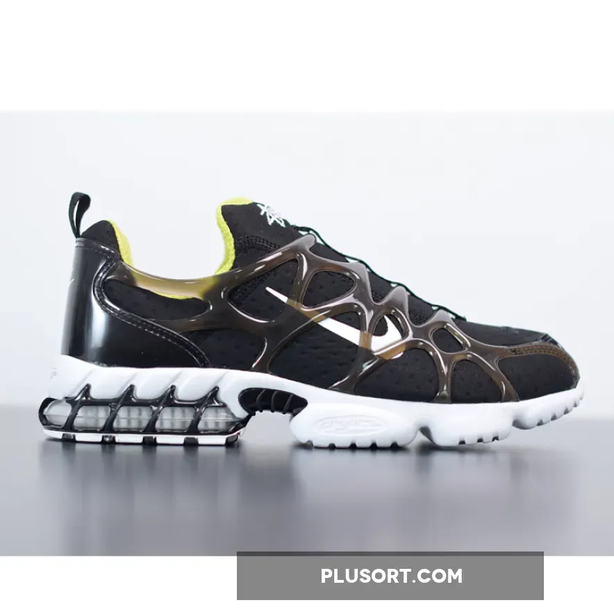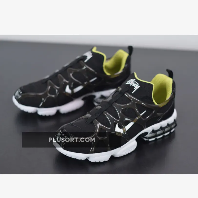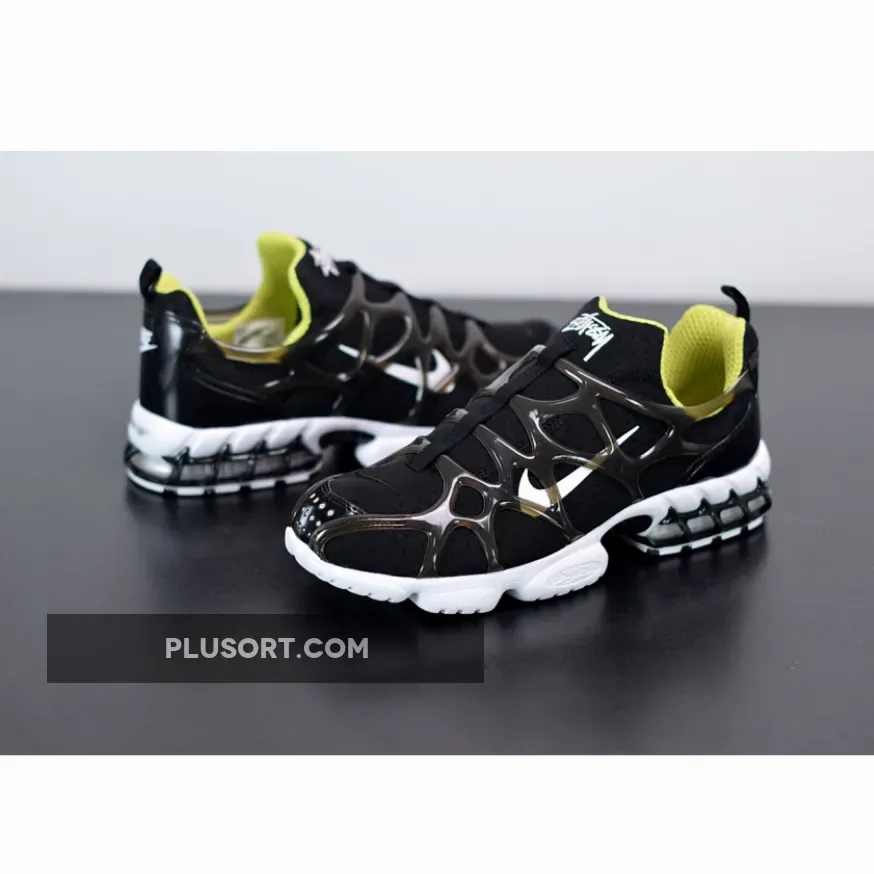 The Nike Air Kukini Spiridon Cage 2 Stussy Black comes with a black web base that houses the TPU cage, similar to the Kukini model. A white Swoosh can be found on the sides of the sneakers, while the heel and the tongue feature a white Nike logo and Stussy branding. The inner lining features neon green, while the midsole uses white, which breaks up the black colorway. A Zoom spec in the sole enhances the shoes comfort and stylish nature.