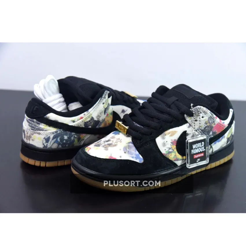 This offering of the Supreme x Nike SB Dunk Low upper is coated in a black upper crafted from suede and canvas materials. Highlighting the sneaker is Rammellzee’s artwork on the toe box, quarter panel, collar, and heel overlay. Other details includes Black suede overlays on the forefoot, eyestay, and Swooshe. Like past collabs, the shoe features a gold “SUPREME” lace dubrae that includes a co-branded hang tag. A Black midsole atop a Gum rubber outsole completes the design.