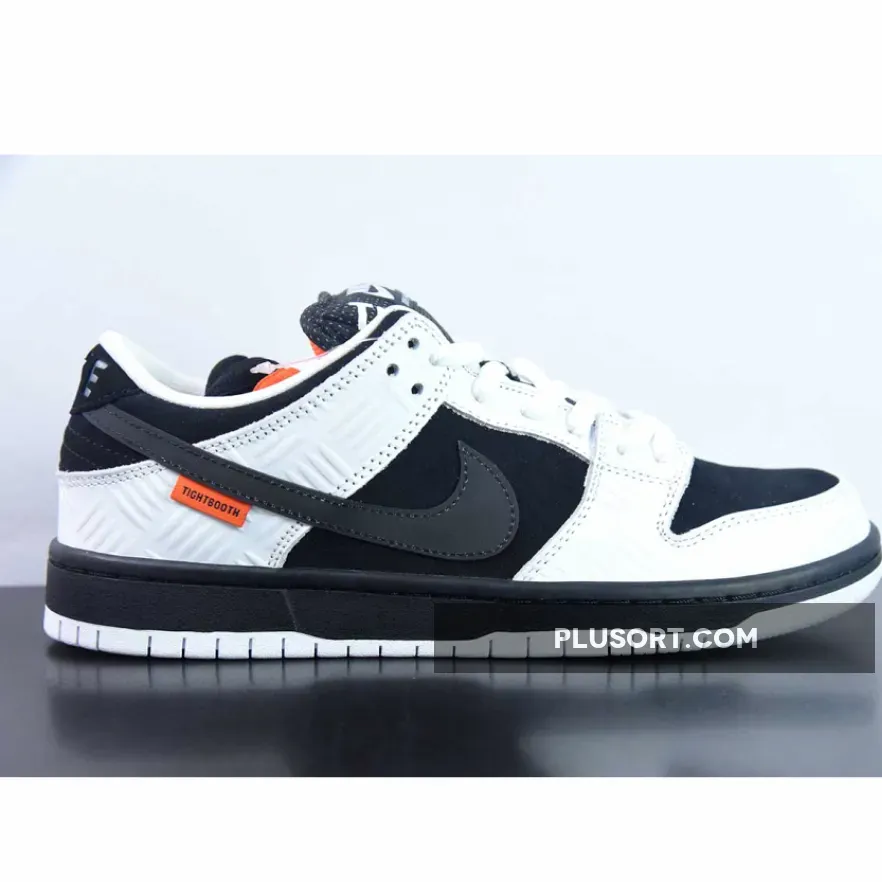 A reflective black Swoosh appears at the lateral, with the medial likely carrying the same style. The padded tongue sees a dotted arrangement joined by TIGHTBOOTH branding next to the typical Nike SB tongue tag. an orange sockliner with TIGHTBOOTH branding matches the small lateral tag below the Swoosh.