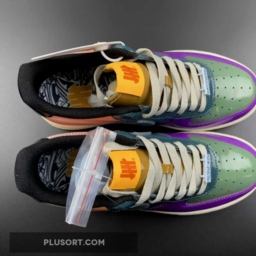 We can see the pair also boasts an eye-catching full patent leather construction dressed in various hues including lavender, lime green, teal, peach, and black. Further elevating the pair are the UNDFTD lace locks, UNDFTD’s five strikes insignia debossed on the lateral heel along with the tongue and insole. Lastly, the pair is finished off with a sail midsole and a gum outsole.