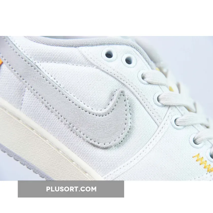 Set to arrive in two color options, this offering of the Union x Air Jordan 1 KO Low comes dressed in a mix of White, Sail, University Gold, and Neutral Grey, a full canvas upper and a hybrid construction that draws from both the KO and the OG Air Jordan 1 Low, which is set off with “aged” midsoles, UNION tags that hang from the Swooshes, exposed foam tongues and thick heel badges. However, The velcro-affixed Swoosh, however, opts for suede, its grey and blue options used to obscure the UN/LA print layered over the adhesive. Each pair also comes packaged in a custom box with an image of a thick gold medallion on its lid.