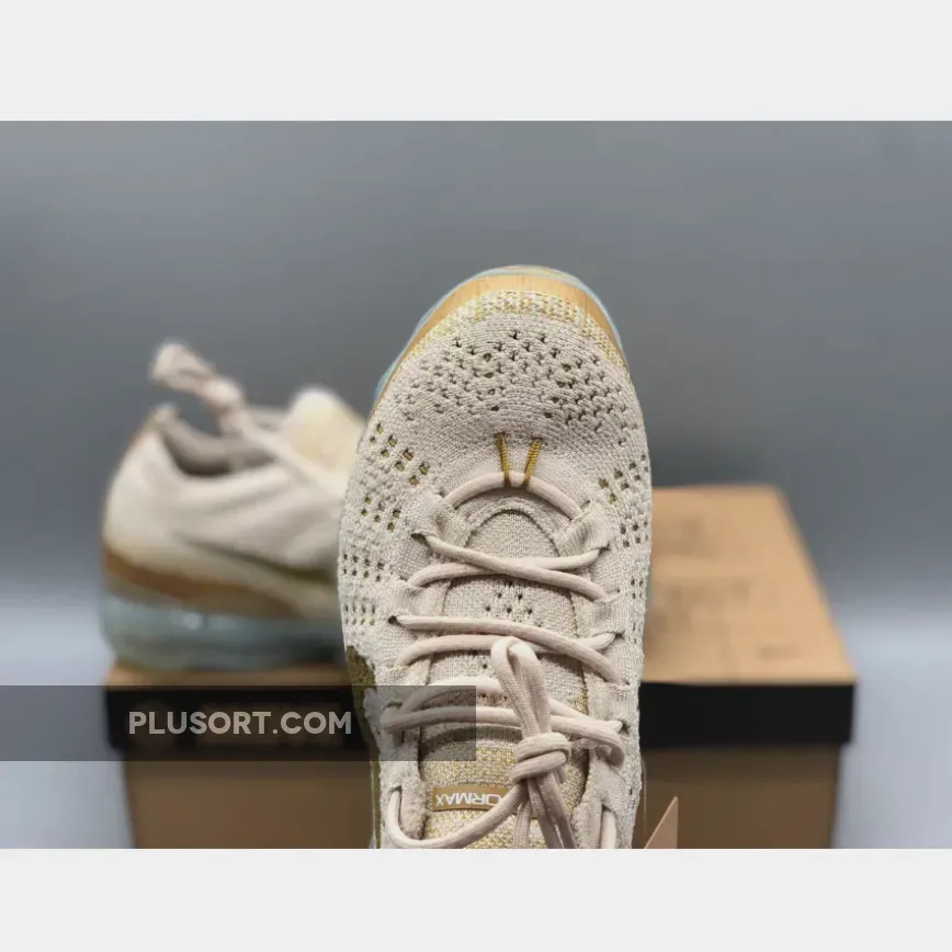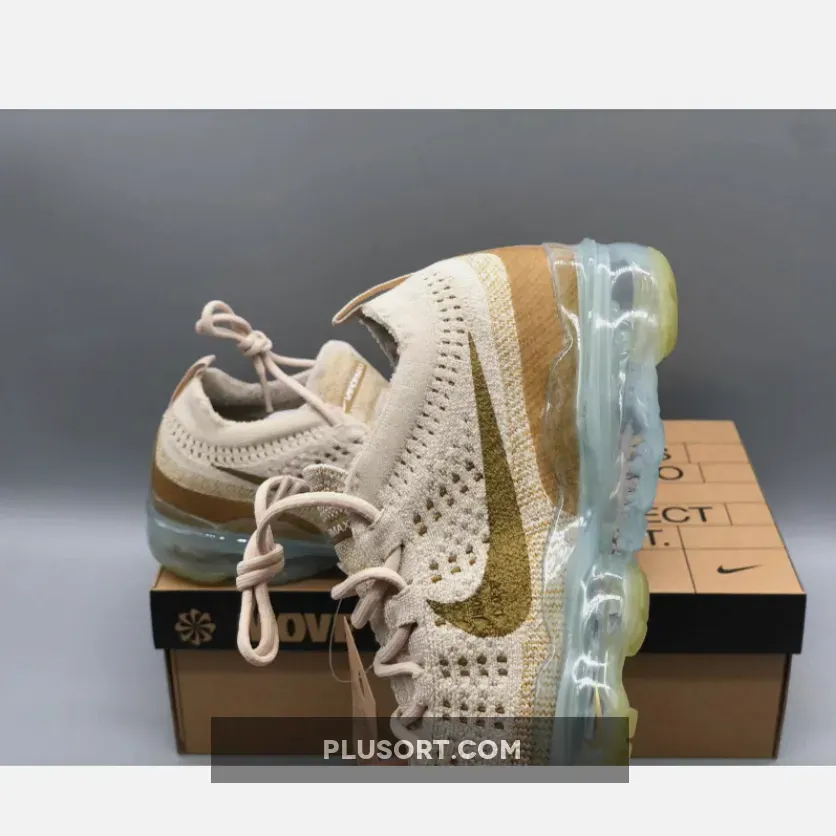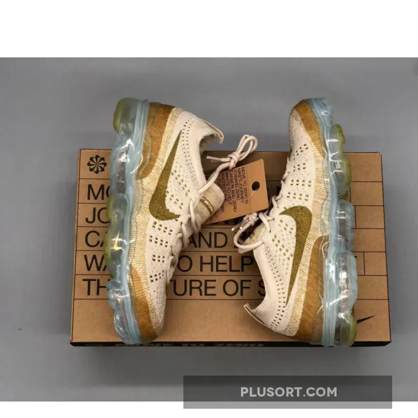 This colourway features a tan Flyknit base with darker tones on the overlays. Gold accents adorn the Swoosh and Flywire cables to complement the colour combination. The transparent full-length Air Max sole unit completes this summer-ready shoe.