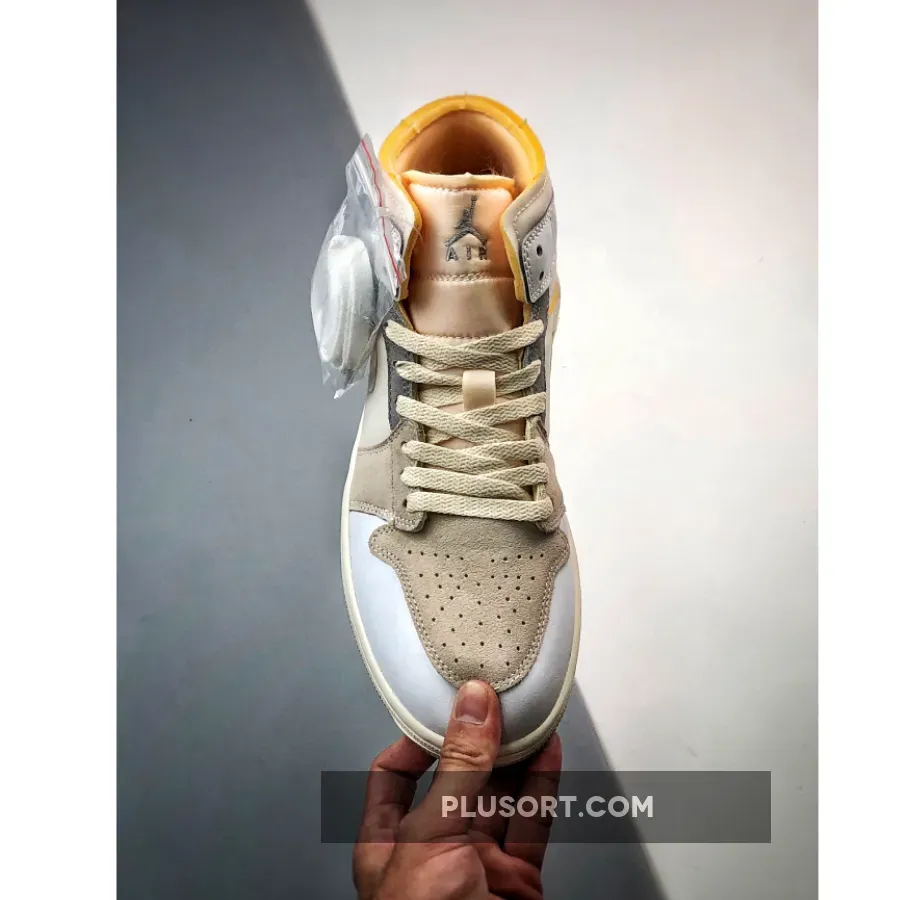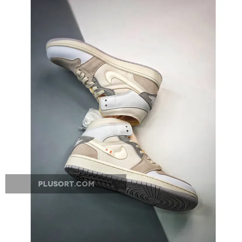 Air Jordan 1 Mid Inside Out showcases a trendy deconstructed look comparable to pieces from coveted Off-White x Nike collaborations such as Off-White x Jordan 1 White. Like most of the pieces made with the late Virgil Abloh, this Air Jordan 1 Mid indulges in a range of premium materials dipped in a clean-cut neutral palette. Furthering the edgy “undone” feel of the pair are the exposed orange stitches on the slim lateral Swooshes, and the exposed tongue foam and ankle padding.