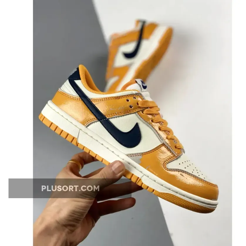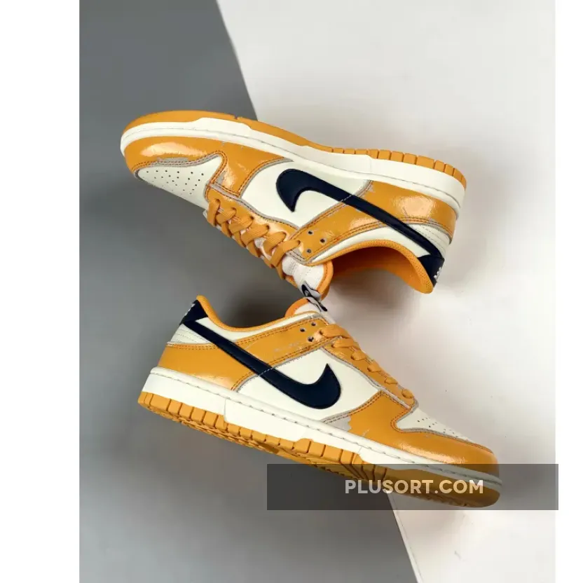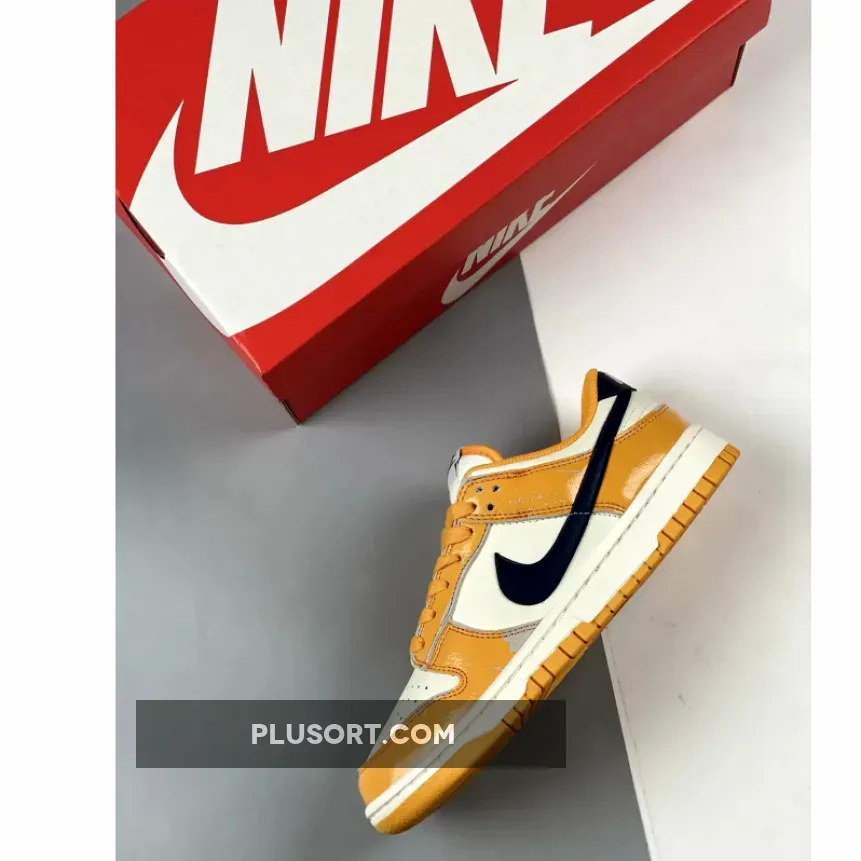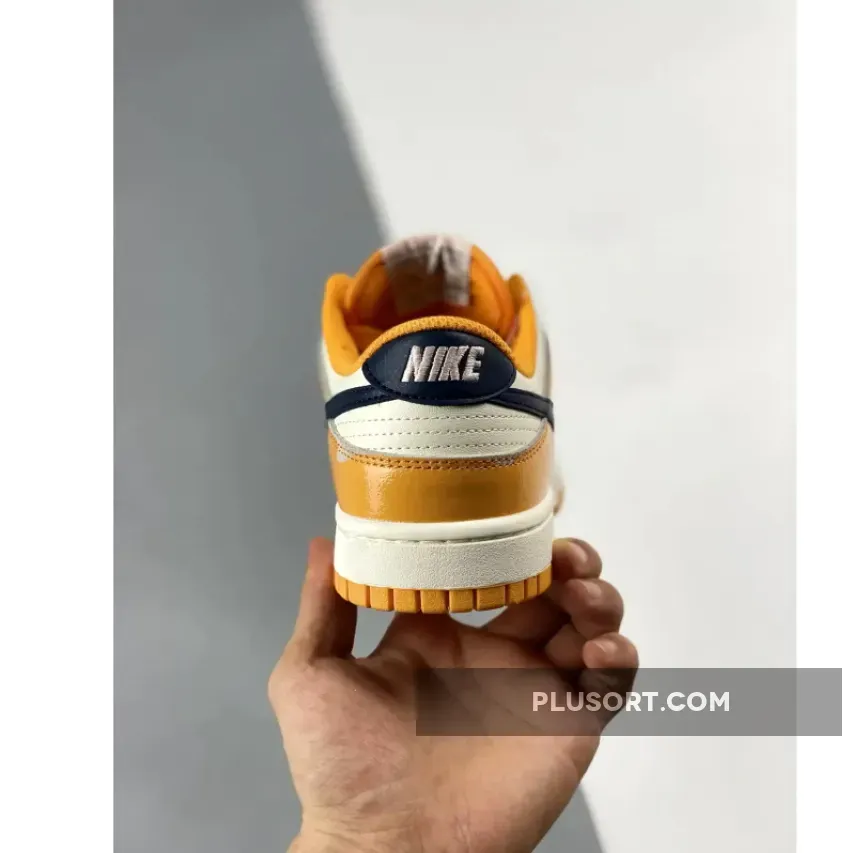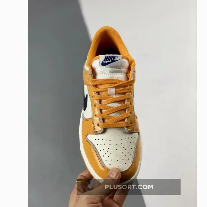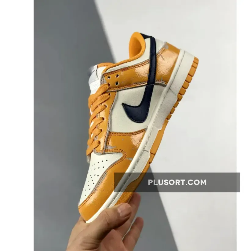 This offering of the Nike Dunk Low comes constructed in a full leather build with mesh tongues and lining. It features a White base with Laser Orange tear-aways overlays and Midnight Navy tumbled leather Swooshes and heels. The worn aesthetic continues on the insoles completed with a White midsole and Orange rubber outsole.