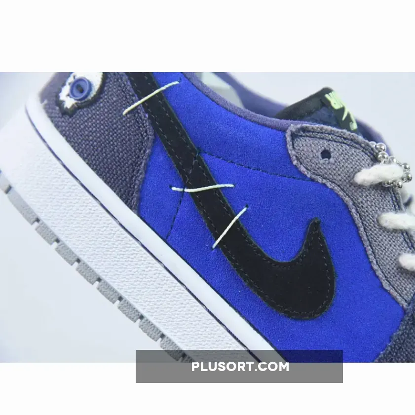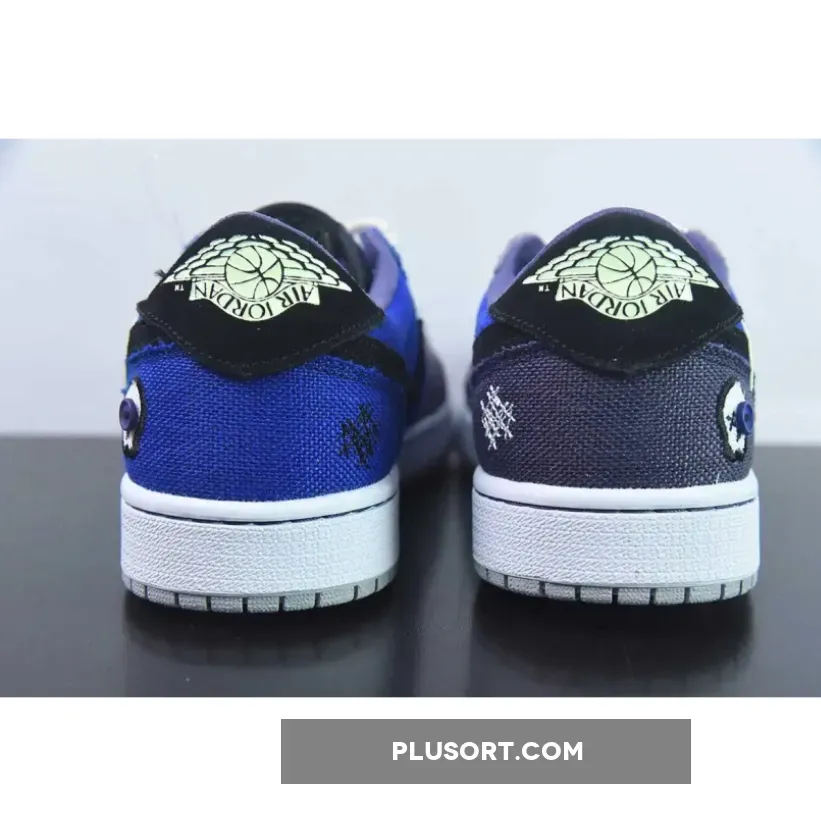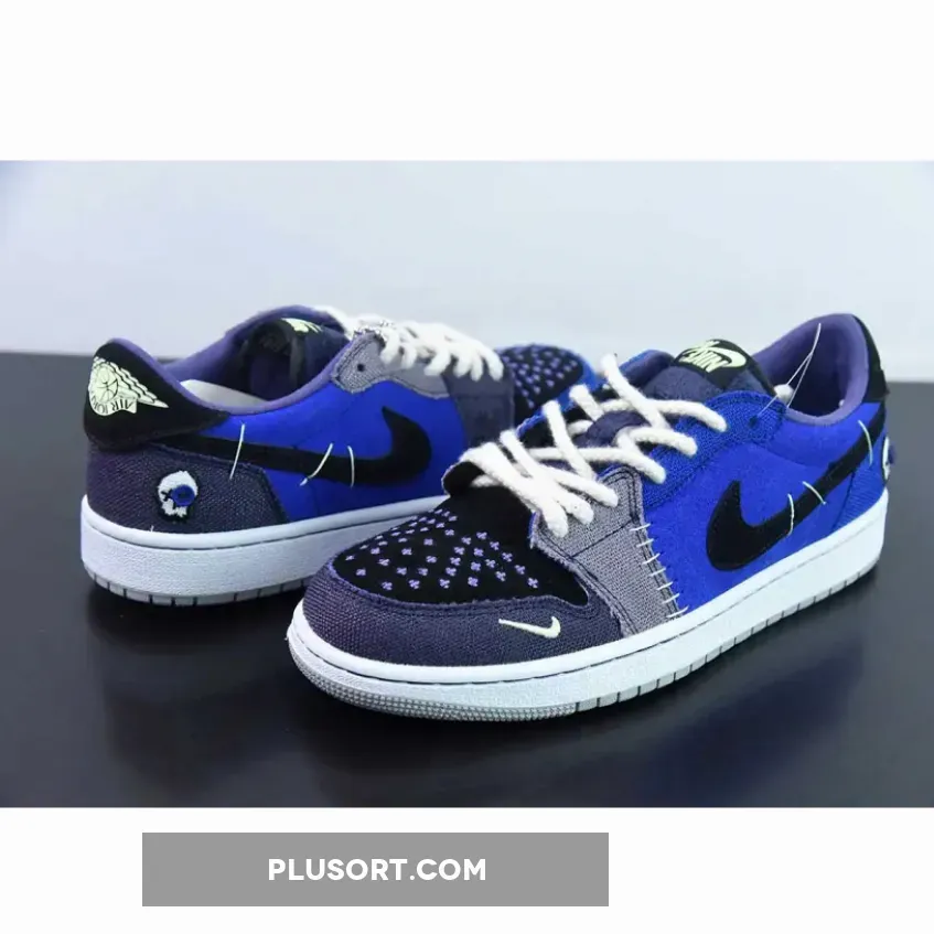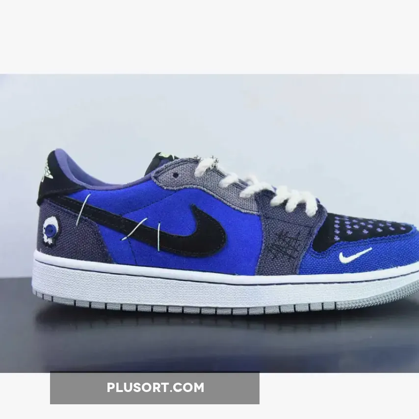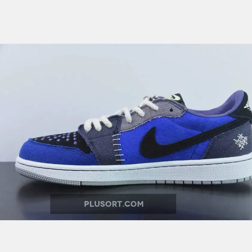 The Zion Williamson x Air Jordan 1 Low OG “Voodoo Alternate” is a shoe that features a mix of blue tones, suede, and burlap-like materials. The shoe is inspired by voodoo dolls and Williamson’s New Orleans background. It has an aesthetic that blends traditional voodoo imagery with a modern style.
